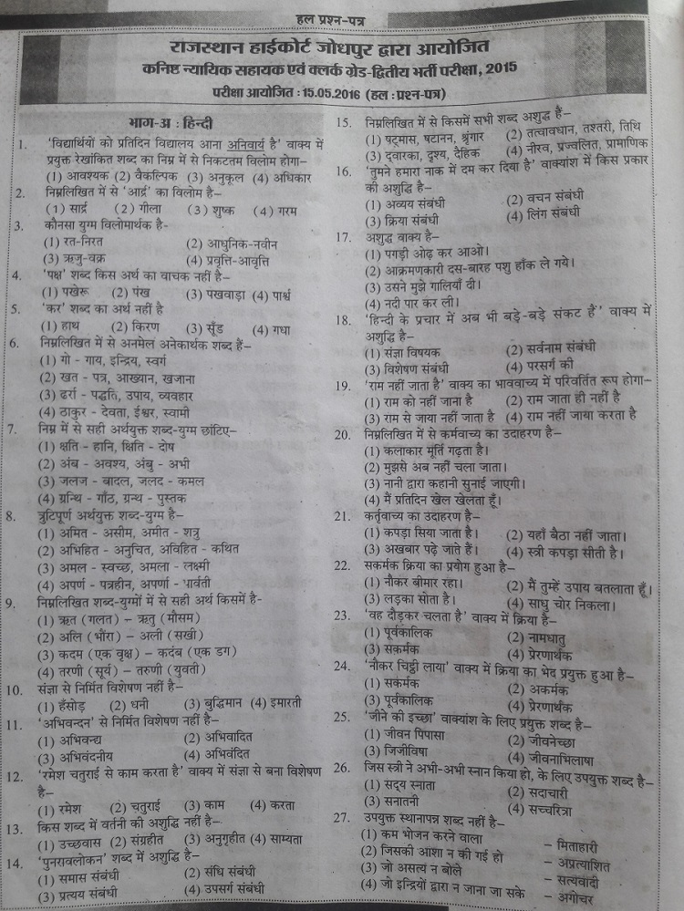 Web1 Rajasthan High Court LDC Previous Year Question Paper PDF with full answer Key. 2 Rajasthan High Court LDC Recruitment 2022 Syllabus & Exam Pattern.. WebThese old papers can be helpful for candidates. We are updating Subject Wise RSMSSB LDC Old Papers & Answers in Pdf format, Hit the links uploaded at the. WebDownload the Rajasthan High Court Old Question papers pdf from our site. We have provided the Rajasthan High Court Previous Papers in Pdf format. Therefore, the. WebRajasthan High Court Principal Seat Jodhpur hc-rj[at]nic[dot]in 0291-2888500-04 Rajasthan High Court Bench Jaipur hcjaipur-rj[at]nic[dot]in 0141-2227124 Site Developed and. WebRajasthan High Court Previous Old Paper How to Apply:- 1- Check the official portal hcraj.nic.in 2- Then search for Rajasthan High Court Group D Previous Papers. 3-. WebRajasthan High Court LDC Official Paper (Held On: 19 Mar, 2023) 150 Questions 300 Marks 120 Mins Download PDF Syllabus Hindi 2022 (Total Tests: 1).
