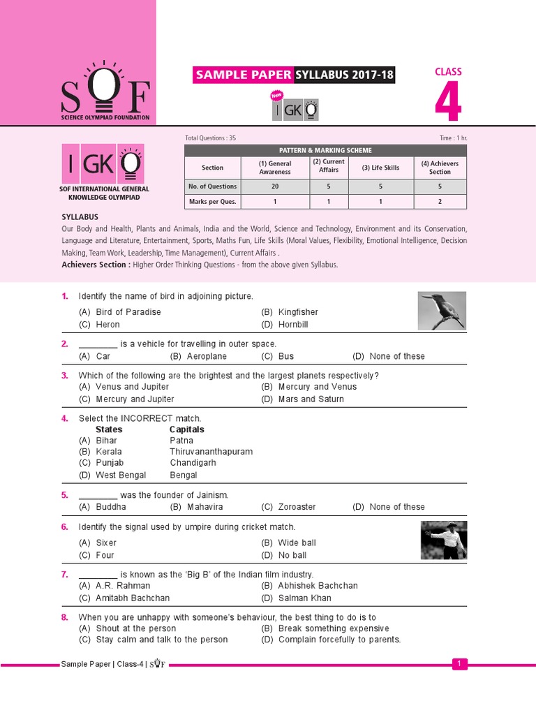 WebThe sample paper is designed by experts to make students familiar with the syllabus covered and pattern followed/marking scheme which can help them to make a smart. WebFree download CBSE Papers and worksheets Sample paper Half yearly exam Prince public senior secondary school New Delhi Rohini Class 4th Class IV. WebThe Class 4 IEO Sample Paper provides a glimpse of the exam. These are specimen exam questions designed according to the IEO test paper to assist the students in. WebICSE sample papers for class 4 are quite understandable and covers the complete syllabus of each subject. Download the ICSE class 4 sample papers from the links given in the. WebDownload free ASSET English Level 1 PDF Sample Papers for Class 4 or practice with online worksheets at India's leading online Olympiad practice platform. ASSET English. WebThis is Dav class 4 entrance exam sample paper of English,Hindi,Math . so watch and subscribe . #entranceexam #dav #viral