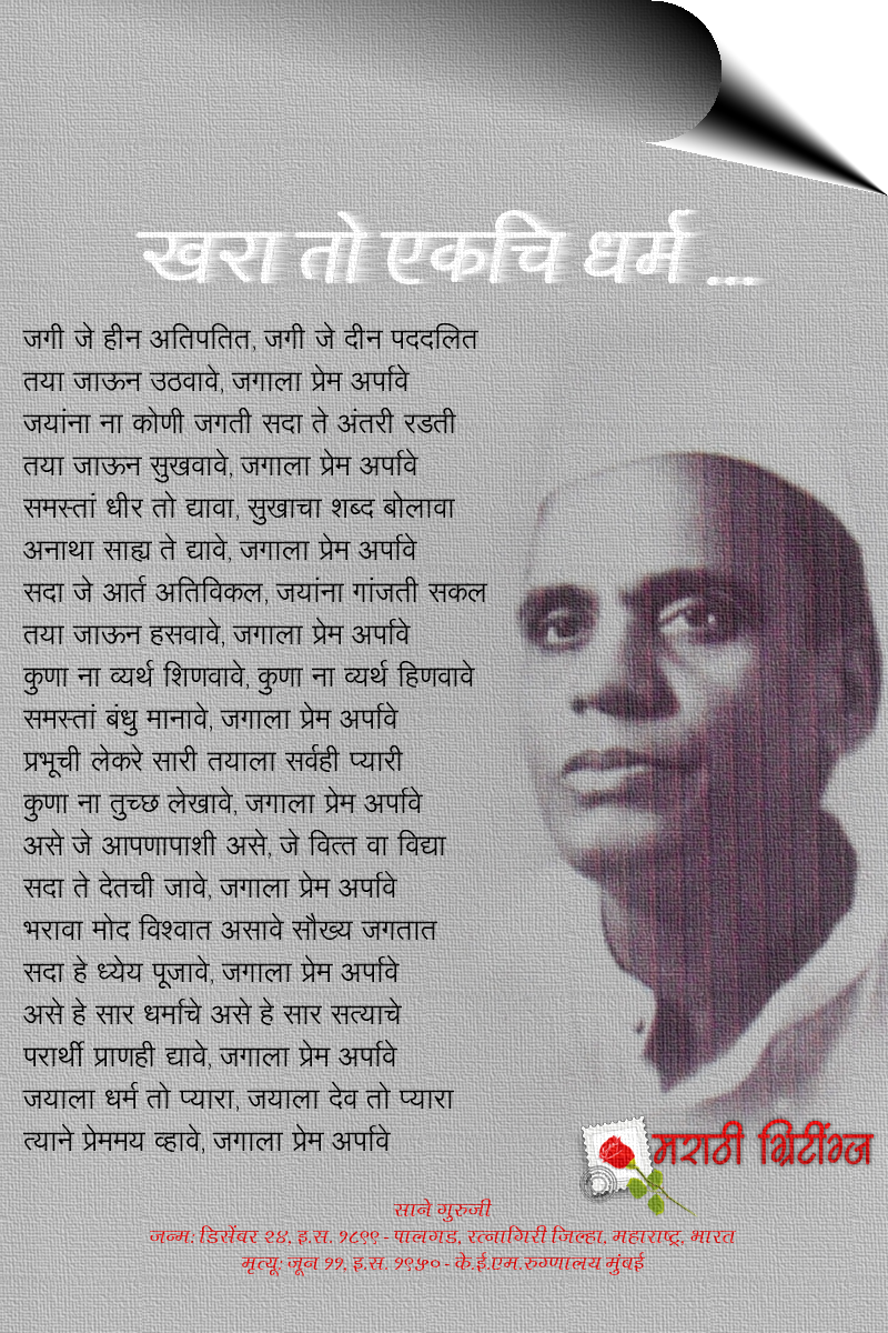 WebPandurang Sadashiv Sane, also known as Sane Guruji was a Marathi author, teacher, social activist, and freedom fighter from Maharashtra, India. He wrote around 82. WebSane Guruji | Sane Guruji Biography | Sane Guruji Information in Marathi | speech | साने गुरुजी |#Sane_Guruji #Sane_Guruji_Information_in_Marathi #biography ... WebSane Guruji was a great patriot who loved his country with all his heart. Pandurang Sadashiv Sane was a great and eminent Marathi writer. His greatest story, “Shyamchi Ayi” is.