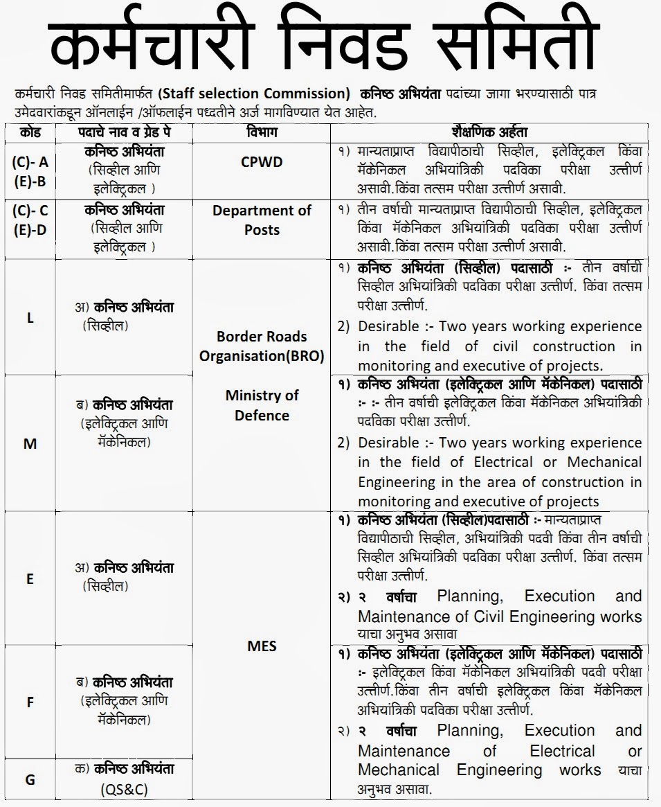 Staff Selection Commission Information In Marathi, Staff selection commission information in marathi|SSC CHSL in marathi|SSC CGL|SSC MTS|by Vishal sir, 13.71 MB, 09:59, 12,376, ATMABAL FOUNDATION, 2022-06-17T08:11:45.000000Z, 9, Staff Selection Comission (SSC) junior engineer Recruitment 2014, mahacityjobs.blogspot.com, 974 x 938, jpeg, Webstaff selection commission examination स्टाफ सिलेक्शन कमिशनच्या परीक्षा स्टाफ सिलेक्शन कमिशन म्हणजेच केंद्रीय कर्मचारी निवड आयोग होय. WebThe Staff Selection Commission is conducted for the recruitment of Group B (Grade II) and Group C (Grade III) posts in various departments of the Central Government. Grade Pay. WebHii this is Atmabal foundation and I am Vishal Bagadi in this video I have provided information about Staff selection commission all exams like ssc chsl,ssc ..., 20, staff-selection-commission-information-in-marathi, Quality Products Webstaff selection commission examination स्टाफ सिलेक्शन कमिशनच्या परीक्षा स्टाफ सिलेक्शन कमिशन म्हणजेच केंद्रीय कर्मचारी निवड आयोग होय. WebThe Staff Selection Commission is conducted for the recruitment of Group B (Grade II) and Group C (Grade III) posts in various departments of the Central Government. Grade Pay. WebHii this is Atmabal foundation and I am Vishal Bagadi in this video I have provided information about Staff selection commission all exams like ssc chsl,ssc ...