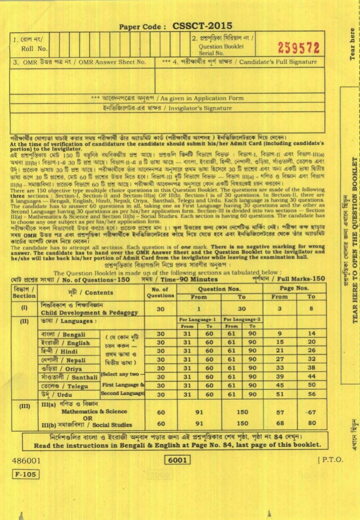 West Bengal TET Exam Previous Year Question Papers PDF Download link